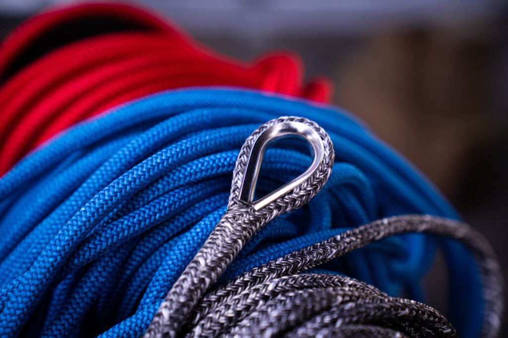Bis vor einigen Jahren gab es auf dem Markt eigentlich nur Tauwerk aus Polyester, aus dem Fallen hergestellt wurden – oft in Verbindung mit einem Stahlseil. Das Polyester-Tauwerk hatte einen Kern aus Polyester und einen Mantel aus Polyester. Mit der Zeit kamen modernere Fasern auf den Markt, wie zum Beispiel Dyneema. Dyneema ist dabei nur ein Markenname, hinter dem ultra-high molecular weight polyethylene (UHMwPE) steckt. Klingt nicht sexy, ist es aber. Dyneema ist 15 mal stärker als Stahl bei gleicher Dicke, ist ultra-leicht und resistent gegen Reibung, schwimmt auf dem Wasser, ist reckarm und ziemlich UV-resistent. Kein Wunder also, dass Dyneema bei Fallen, Softschäkeln, Backstagen und als Reling heute gern eingesetzt wird. Für Schoten und Festmacher eignet sich es nicht, da es zu wenig Reck hat und nicht federt. Hier wird man weiterhin auf Polyester oder auch Polypropylen (bei Festmachern, da schwimmfähig) gehen.