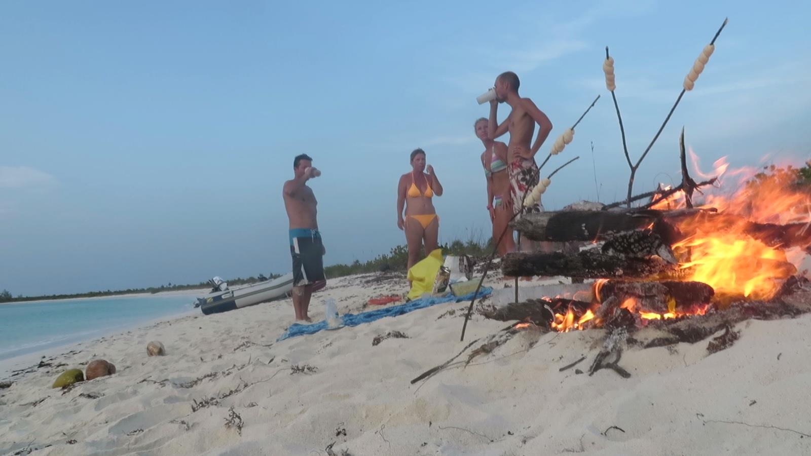 Abends machen wir am Strand Lagerfeuer mit Würstchen und Stockbrot, aber es gibt hier so viele Sandflöhe, dass einem echt der Spass vergeht! Und was auch auffällig ist, ist der ganze Müll hier am Strand. Normalerweise ankert man in Lee der Insel, aber auf den Bahamas gibt es viele Ankerplätze in Luv, die durch ein vorgelagertes Riff geschützt sind. Der ganze Plastikmüll, und natürlich die Algen, werden also hier an der Luvseite an den Strand gespült.