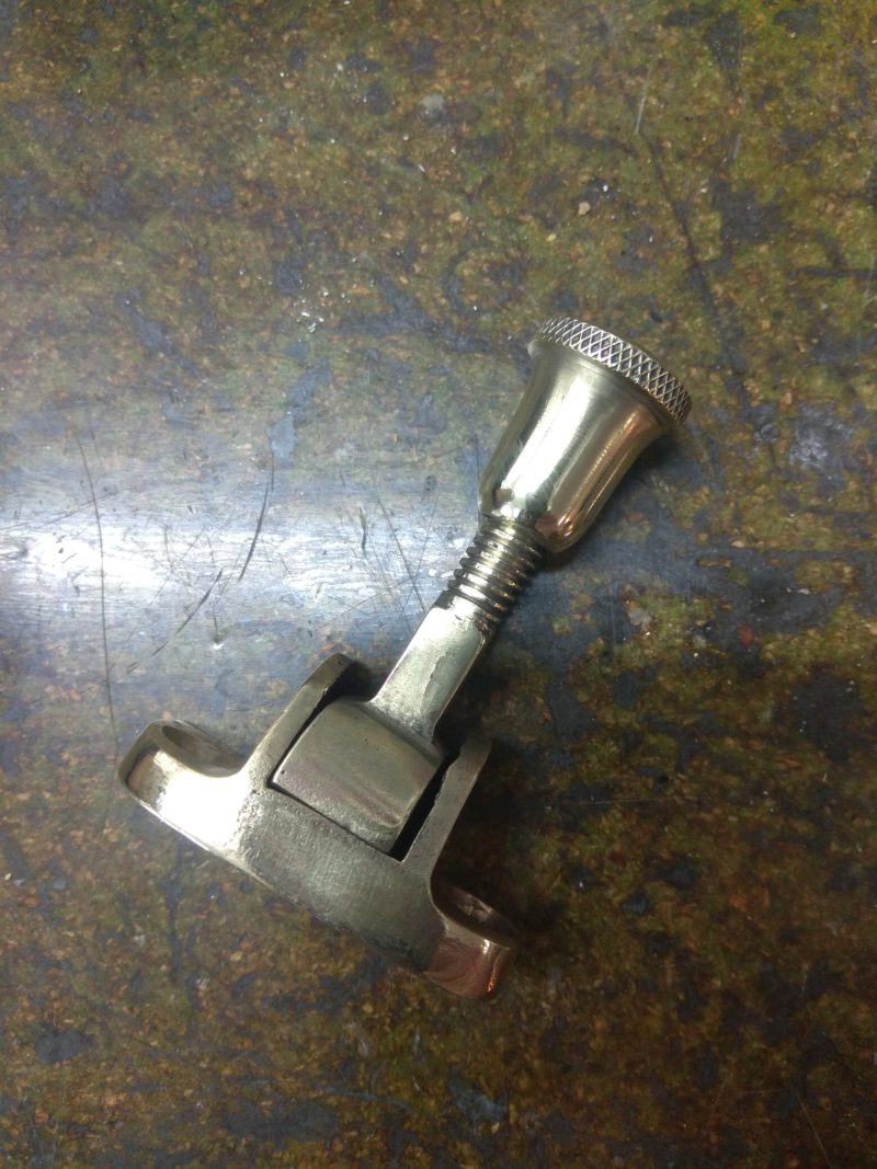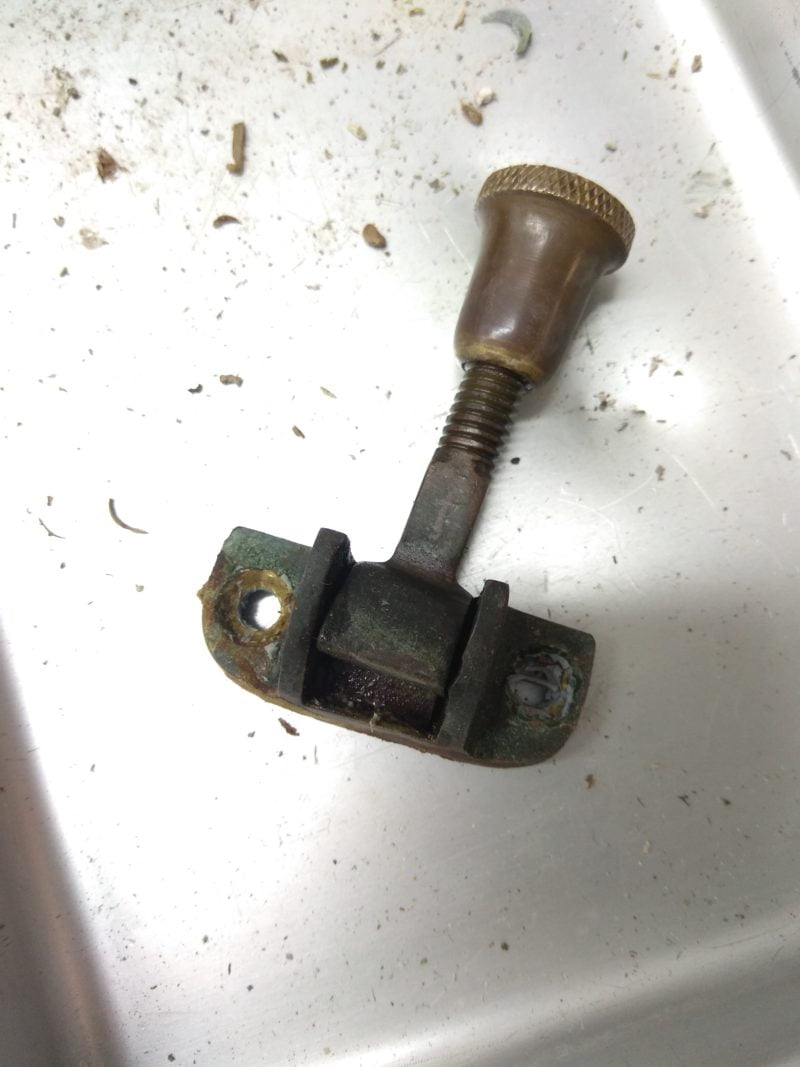 Die Beschläge aus Messing habe ich kurz in Salzsäure gelegt, mit viel klaren Wasser abgespült und nachher poliert, jetzt glänzen sie wieder wunderschön (wenn wohl auch nicht lange). Seht hier den Vorher-Nachher-Vergleich: